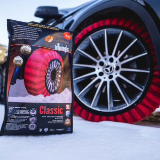3- Comfort, betrouwbaarheid en goedkeuringen : TÜV, Onorm 5121, EN16662-1 en B26 goedgekeurde, CLASSIC sneeuwsokken respecteren uw banden, uw voertuig en de weg. Ze bieden een soepele en trillingsvrije rit en zorgen voor superieur comfort in vergelijking met metalen kettingen. Hun unieke ontwerp zorgt ervoor dat ze na een paar seconden rijden op hun plaats blijven, waardoor het risico op slippen tijdens normaal rijden wordt geëlimineerd.
